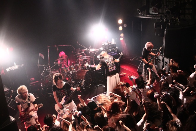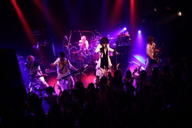 そして後半は怒涛の展開だ。「ヒステリカ」ではReiの高速スラップベースが冴え渡り、バンド史上最高速を誇る「ARREST」での風弥の超高速ツーバスにオーディエンスの熱狂はさらに高まりを見せる。そこに続く「BLACK DROPPer」ではなお(G)が頭から水を被り、そのまま客席にダイブするなどの激しいパフォーマンスでフロアも水浸しとなる熱狂の展開が繰り広げられた。本編ラストは夕霧の歌声がどこまでも伸びる「SWEET DREAM」で幕を閉じた。