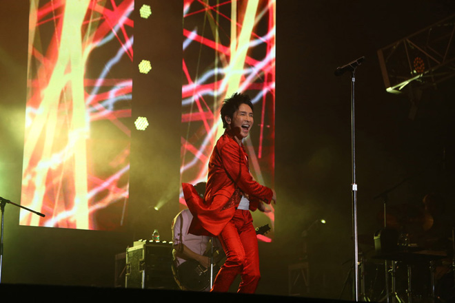 ライブがスタートすると一気に会場はヒートアップし、「GOLDFINGER’99」が披露されると、会場に集まった1万人とともに「A CHI CHI A CHI」と大合唱、フロアーは一気に最高潮となった。「いつものライブとはちょっと雰囲気が違うけど、全ての“郷ひろみ”をみてほしい!」と集まった観客に向け、初のサマソニ出演となった想いを語った。