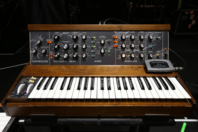 MOOG製モノフォニック・アナログ・シンセサイザーminimoog。操作性と機能性の高さに加え、44鍵、ピッチ・ベンダー、モジュレーション・ホイールといったパフォーマンス・コントローラーなどを装備。