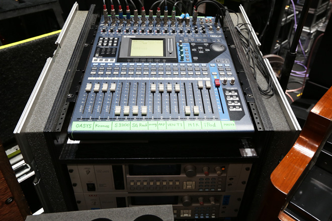 ミキサーはUSBケーブル接続でマルチトラックレコーディングも可能なヤマハ製01V96。その下のラックにはアカイ製S3200XLをセット。