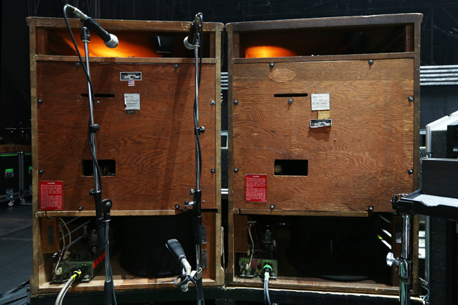 レスリー製のロータリースピーカーを2台セット。ドップラー効果を利用して、トレモロやビブラートなどの音色の効果を出すために作られたアンプ内蔵のスピーカーユニット。