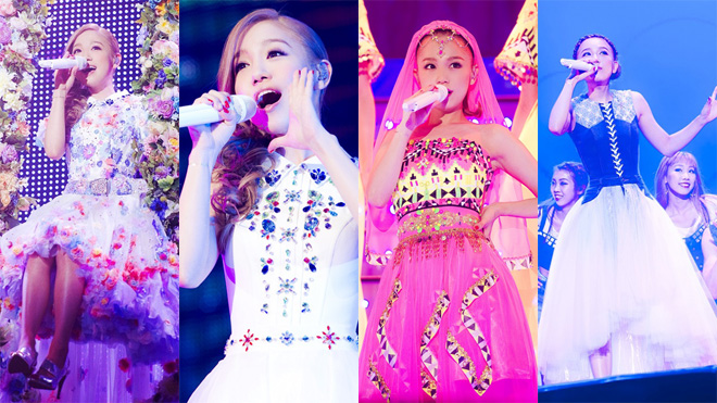 「Abracadabra」ではインドの伝統音楽を匂わせるダンサーパフォーマンス後に、ステージ上に突如出現したエスニックテントの中から、インドの伝統衣装をネオンカラーで現代風にアレンジした煌びやかでエキゾチックなドレスで再登場。さらに「Abracadabra」後には、ものの数秒でインドの世界からアメリカンポップなコスチュームに1転、次から次へと観客を驚かせる。