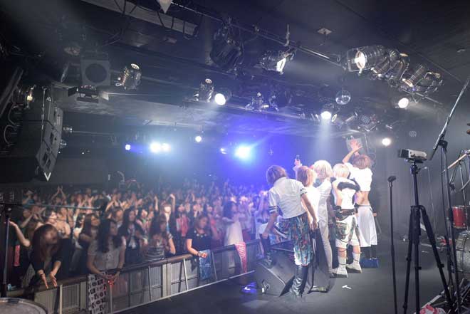 「お前達の傷付いた声を、傷付いたその心を置いていけよ!」KOU はそう叫ぶと「傷声」へ突入する。CLOWDで一番激しく、ダークな要素もある楽曲だ。先ほどの言葉に応えるようにオーディエンスも会場をアツくする。「今のメンバー、ファン、楽曲、全部が幼い頃に描いた理想郷なんです。そんな一つ一つが今僕の前に250という星達となって輝いています。そんな星空に願いをぶら下げて。聴いてください、「#夏の微熱」。」KOUがタイトルコールをして演奏がスタート。素敵なメロディラインにKOUの声がベストマッチしている。