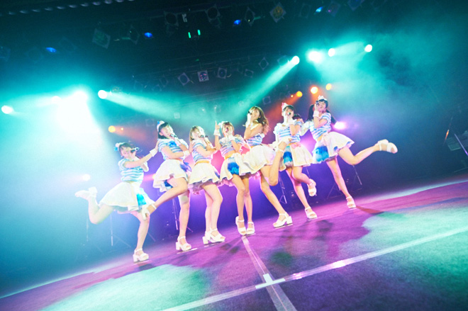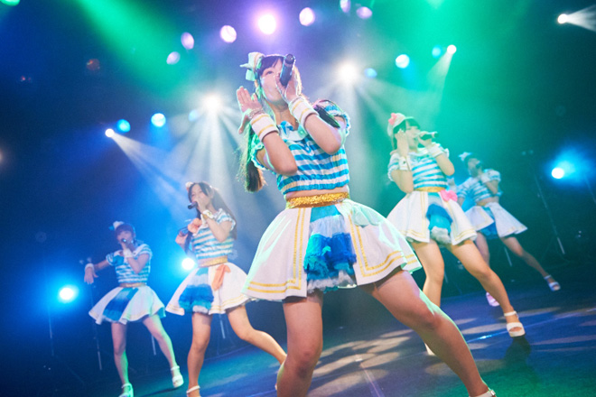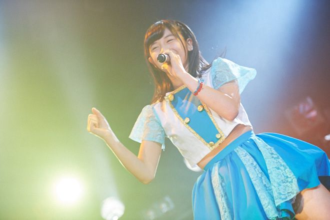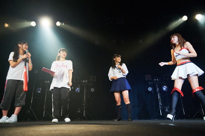 続いては、delaワンマンLIVE最大の見どころとも言える、テレビドラマ・バラエティ出演経験者を多く抱えるdelaならではの寸劇(?)コント(?)の「dela劇場」の開演だ。今回は高校の屋上で未来にタイムスリップしてしまった早見紗英が経験する20年後の未来がテーマとなっていた。途中モノマネあり、漫才あり、さらに劇の最後にはバラード「未来への招待状」が歌われミュージカル仕立てのdela劇場は、今回もファンの心をがっちり掴んだようだ。そのまま全メンバーが整列し元キャプテン犬塚志乃が新キャプテンに沢井里奈を指名、会場から新キャプテンを認定する大きな拍手が沸き起こった。