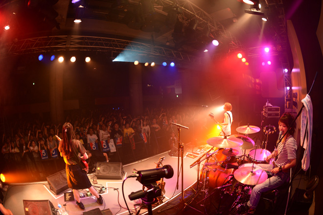 それにしてもChelsyのステージは素晴らしかった。レディースバンドにもいろんなタイプがあるし、何が一番で何が最も凄いという話でもないが、Chelsyの存在はあらゆる点で一段抜けている。楽曲のよさ、声の良さ、歌の良さ、バンドの表現力、そして個性際立つ各メンバーのキュートなルックス、MCのフランクさ、グンを抜いた演奏力…そして何よりも特筆すべきは、音を出すこと/音楽を演奏することが楽しくて仕方がないという思いが、表情から、動きから、そして音そのものからはじけるように伝わってくる多幸感だ。音楽に向かう3人の視線に迷いがない。それはとても清らかで崇高なものにも見えた。