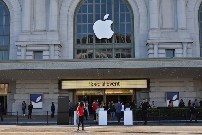 なお余談だが、この日のサンフランシスコは快晴。気温は30度近くあったのではないかというほどの暑さだったが、日本よりも湿度が低く、過ごしやすい。会場となったビル・グラハム・シビック・オーディトリウムの入り口にはアップルのリンゴマークが掲げられていた。また、今回のイベントを締めくくったライブに登場したのは、ワンリパブリック。会場で公開されたiPhone 6sのプロモーション映像には、新色のローズゴールドモデルを手に自撮りしているPerfumeの姿も映し出されていた。