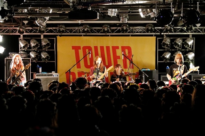 そして、この日、TOWER RECORDSとSCANDALがコラボし“NO MUSIC, NO Sisters?”という新曲タイトルをもじった企画には、豪雨にもかかわらず男女それぞれ300人が渋谷タワーレコード地下のライブスペースに集まった。