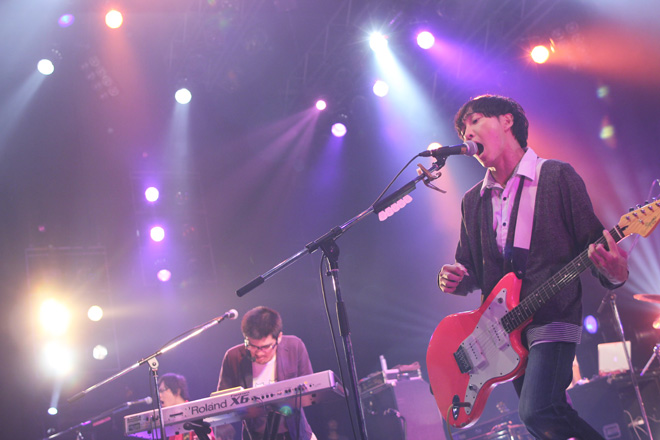 そして、ある意味、このフェスには欠かせないアーティスト 神聖かまってちゃんの登場となる。の子(Vo&G)による2ちゃんねるバンド板での宣伝書き込み活動を経て、自宅でのトークや路上ゲリラライブなどの生中継、自作ビデオクリップの公開といったインターネットでの動画配信で注目を集めた、時代の申し子である。「人間というものをほじくり返してやろうかなと思いますよ、鬱フェスだか何だか知んね―けど、こっちはガチでそんな感じだったから」と出演前に語っていた の子の“鬱が爆発”し、いつにもまして破壊的なパフォーマンスとなった。