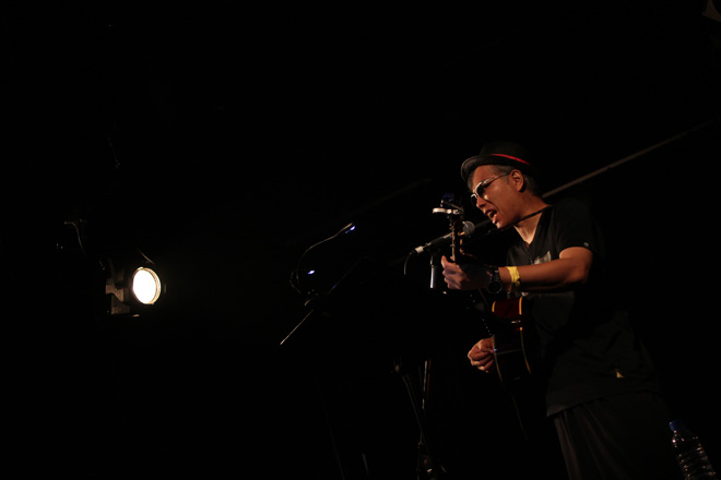 次に登場するのは、2014年の筋肉少女帯から今回はソロステージでの出演となった“生ける鬱レジェンド”大槻ケンヂ(筋肉少女帯/特撮)である。大槻ケンヂは、アーバンギャルドと共に今回のフェスを象徴するような精神的支柱のアーティストと呼べるのではないだろうか。幾多の世の中の躁と鬱を経験して得て来た人生の悟りとユーモア、そして貫録を漂わせて弾き 語るさまは僕らの指針と言えるだろう。
