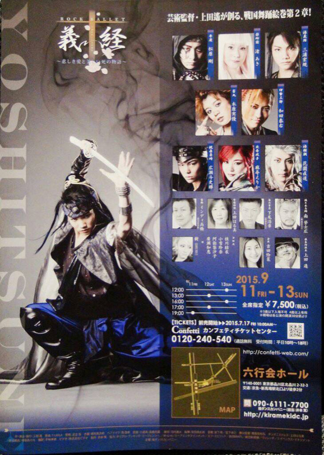 今回はイレギュラーですが、9/11(金)in 六公会ホールにて行われた舞台「戦国舞踏絵巻 ROCK BALLET『義経』命果つるまで、疾風怒濤編」の感想とご案内をしたいと思います。