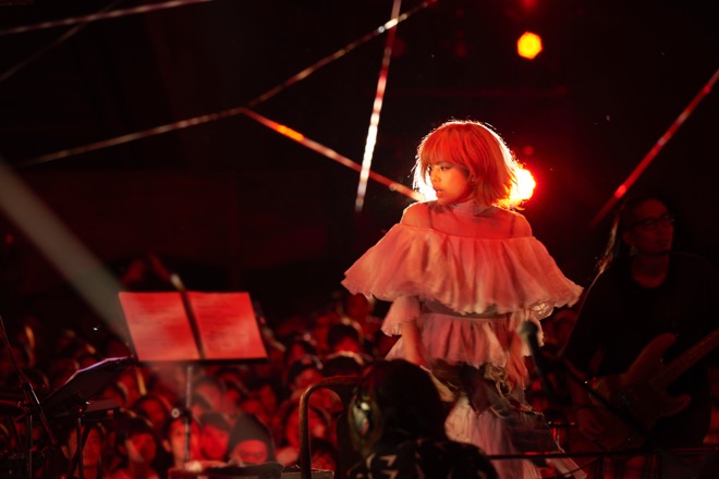 コケティッシュな「上海 ベイベ」を歌い終えて笑顔を見せたCharaは「みんな元気ですか? グリコです」と声をかける。映画『スワロウテイル』で彼女が演じた主人公の名前だ。そして「次の曲は、グリコが会ったことのないお母さんに向けて書いた曲です」と、「小さな手のひら」を歌う。純白のドレスを着た彼女は最後まで“グリコ”としてステージに立っていた。