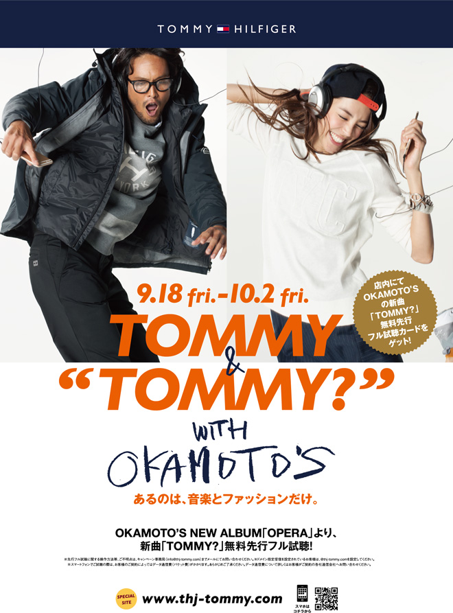 トミー ヒルフィガーのキャンペーンスペシャルサイトでは、「TOMMY?」のシーンを彷彿させるようなウィットにとんだファッションフォトを見ることができる。トミー ヒルフィガーのオファーで実現した「TOMMY &“TOMMY?”」キャンペーン。OKAMOTO’S「TOMMY?」を先行フル試聴できるこのチャンスをお見逃しなく。