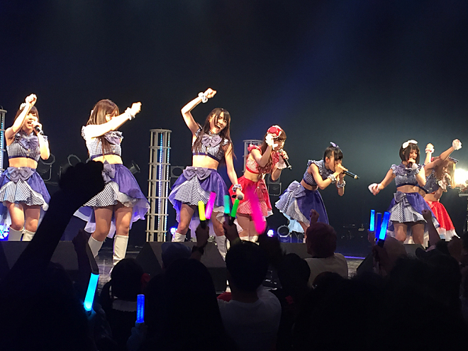 夜の部は「Zepp Sapporo」に登場。最初の楽曲「倍速恋愛時計」では北海道出身のアヤミが「北海道盛り上がっていくよ~」と煽りを入れた途端に会場は一体感が。続いて「マジカル☆エクスプレス☆ジャーニー」「ワタシ☆LOVEな☆オトメ!」と盛り上げ楽曲が続き、Newアルバムの新曲「転校ガール」そして定番曲「飛行実習~Learn To Fly~」では会場一体となって「ハイハイ!」とコールが鳴り響いていた。