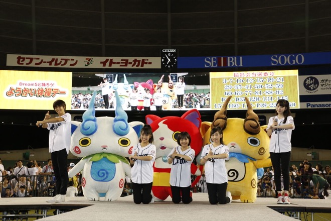 9月12日、西武プリンスドームにて、<Dream5と踊ろう!ようかい体操デー>イベントが行なわれ、Dream5とコトリwithステッチバード、アニメ『妖怪ウォッチ』からジバニャン、コマさんとコマじろうが来場した。