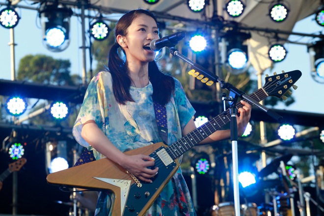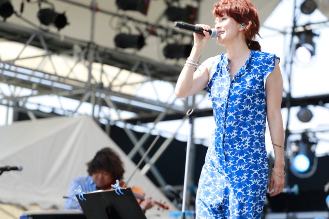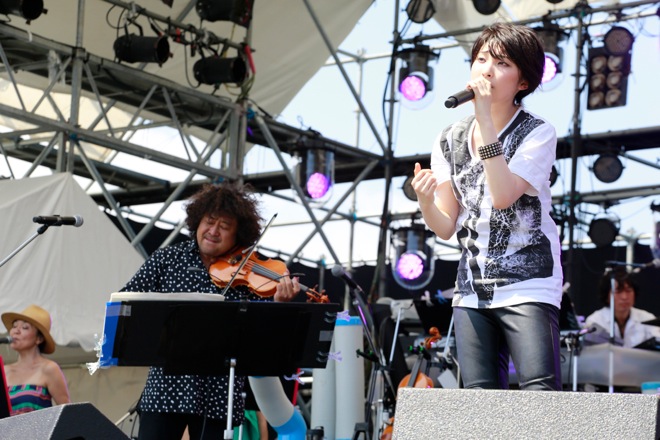 そんな葉加瀬氏の言葉に導かれるように、今年が初出場となる家入レオが元気にBONANZA STAGE(センターステージ)に登場。真っ青な空に向けて高々と手を上げ、観客と一緒に手拍子を始めると、1曲目の「Shine」から会場を爽やかに盛り上げた。今年の出演陣の中でも最年少となる彼女は、16歳で福岡から上京し、「初めて観た夏フェスが、このフェスだったんです。今日、こうやって歌っていることが不思議です」とエピソードを語ると、3日前の8月19日にリリースされたばかりの新曲「君がくれた夏」を披露。続く「Silly」では、葉加瀬氏とのコラボレーションを行い、力強くも、優しさを含んだヴァイオリンの音色と、表現力豊かな歌声の共演に、大きな拍手が送られた。