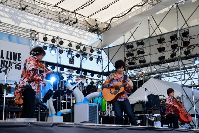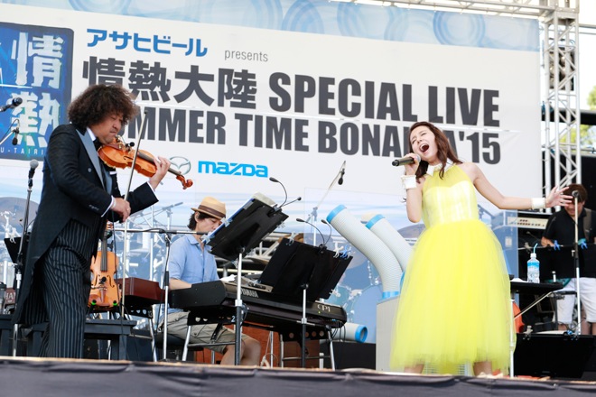 「最終的には、大阪の御堂筋と、東京では表参道をぶち抜く一週間くらいの音楽祭にしたい」。こう語る葉加瀬太郎がイベントアドバイザーを務める、<情熱大陸 SPECIAL LIVE SUMMER TIME BONANZA’15>の東京公演が8月22日、夏らしい真っ青な空の下、東京・夢の島公園陸上競技場で開催された。