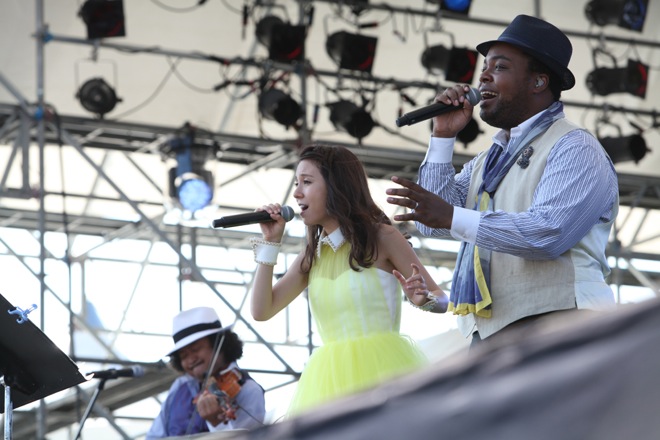 そのBONANZA STAGEに、大歓声を浴びて登場したのが、昨年に引き続き2度目の出演となるMay J.だ。ダンサーを従えて歌った「So Beautiful」や「風になりたい~RAINBOW」では、観客と一緒に手を振り、踊り、大合唱で会場全体を包み込んでいく。そして、誰もが待ち望んでいた「Let It Go -English ver.-」では、超有名な最後のワン・フレーズを“♪少しも暑くないわ”と歌詞を替えてキュートに歌い、喝采を浴びた。ラストには、葉加瀬氏とのコラボレーションで新曲「Sparkle」を熱唱。「夢は、自分を信じていれば叶えることができる」というメッセージを込めて書いたという詞を、実にドラマチックに歌い上げていた。