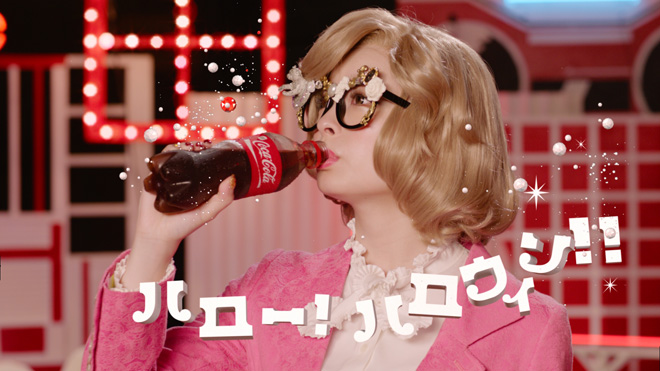 「もともと『コカ・コーラ』が大好きなので、CMに出演できてすごくうれしいです。『コカ・コーラ』を初めて飲んだのは、小学校低学年の夏休みだったと思います。真っ黒な炭酸飲料なので、当時は、どんな味がするんだろうとドキドキしながら飲みました。めちゃくちゃおいしいし、元気の出る飲み物だと思いました。今でもよくライブの後に飲んでいます。ハロウィンのCMだったので、すごく楽しかったです。いろんなキャラクターがハロウィンを表現し、セットもかわいくて、こんなすてきなCMに出られて幸せです!ハロウィンは、ともかくCRAZYになったもん勝ち!『コカ・コーラ』を飲んで、一緒にはじけちゃおう」──きゃりーぱみゅぱみゅ
