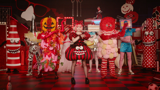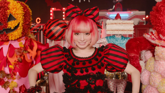 新曲「Crazy Party Nightぱんぷきんの逆襲」は、きゃりーにとって初のハロウインソングとなるが、「去年、ティム・バートンさんにお会いする機会があって、『ティム・バートンのコープスブライド』という作品のエミリーというキャラクターの仮装をしました。メイクさん、スタイリストさんについていただいて、全身真っ青の仮装に挑戦しました。そのクオリティーがすごく高くて、今でも気に入っています。今年のハロウィンは去年を超えるクオリティーの高いものにしたいと、楽しみにしています。また、初めてハロウィンをテーマにした新曲「Crazy Party Night~ぱんぷきんの逆襲~」をリリースしたので、この曲でハロウィンを盛り上げていきたいと思っています」と、気合も十分だ。