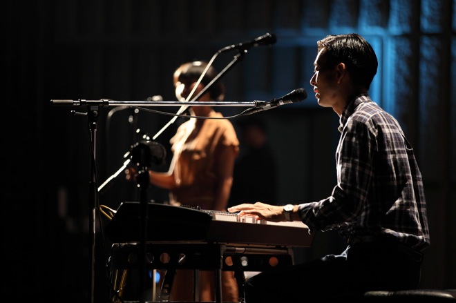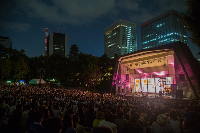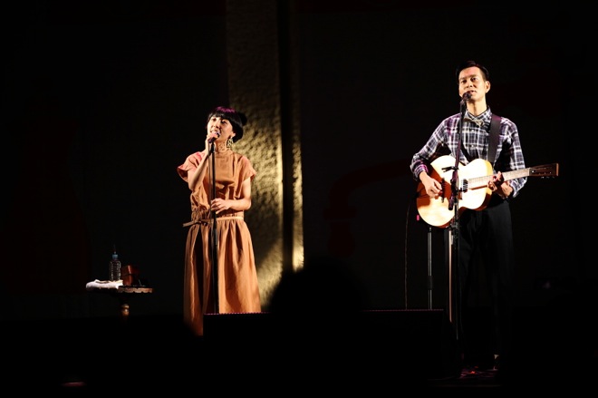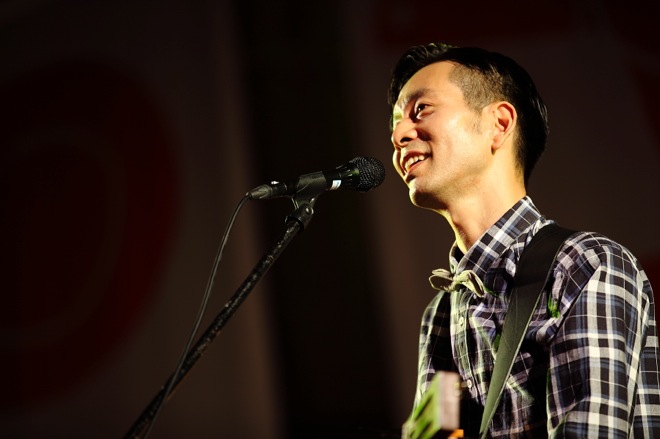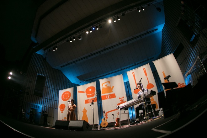 開演時間は18時。日の入り後、マジックアワー特有の藍色に辺りが包まれる頃にハンバートハンバートは二人だけで登場した。昨年2014年の秋にも同じ日比谷野音でライブを行ったハンバートであるが、その時はバンド編成だったため、今回は趣向を大きく変えた。全編通して、他にメンバーは誰も出てこない。というシンプルな編成によるライブなので、野外の会場でしっとり秋の訪れを感じながら、なんだか心が和んでいくような、割とほんわかとしたステージを想像してやって来たのである。けれど実際は、もっと彼らの意志がしっかりと宿った力強いライブだった。
