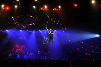 HYDE:幕張メッセで彼女たちが客席を走り回ったのを見た瞬間に、“あ! こういうこともできるんだ!”って思ったんですよ。僕ら、客席に降りたらいけないって決めつけてるというか、頭が凝り固まっちゃってるんですよね。スタッフに「降りたりできるの?」って聞いたら、「会場によってはできるところもありますよ」って言われて「なるほど~」って。それがキッカケで、みんなでフロアを大行進するようになったんです。身内だけで開催していたら気づかなかったことも、新しい血が入ってくることによって、どんどんイベントが活性化されていく部分がありますね。