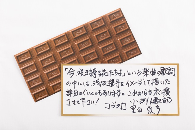 「『今、咲き誇る花たちよ』という楽曲の歌詞の中には浅田選手をイメージして描いた部分がいくつもあります。これからも応援させて下さい!」