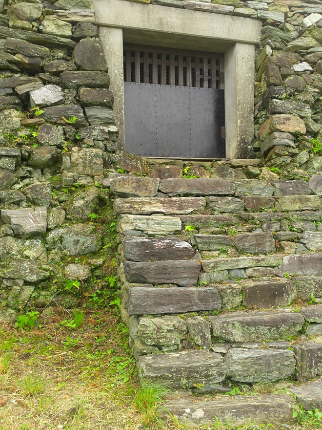この天守曲輪で一番好きな場所がある。それは台所がある多門櫓の地下から埋門が作られていて、いわゆる逃げ道がしっかり確保されているという点である。天守曲輪の外の犬走りを歩けば、途中に石垣の真ん中から突然石で出来た埋門が表れる。なんとも粋だ。台所の風通しにも役立って一石二鳥だったはずだ。ここは必見である。卓偉のライブと同じくらい必見である。