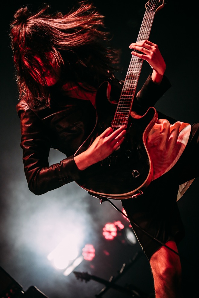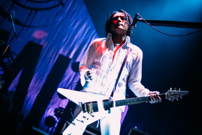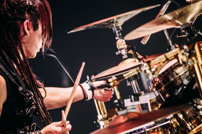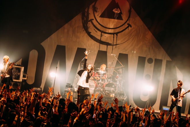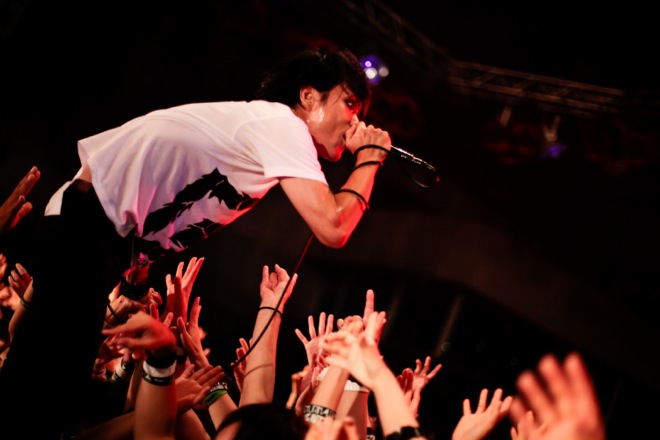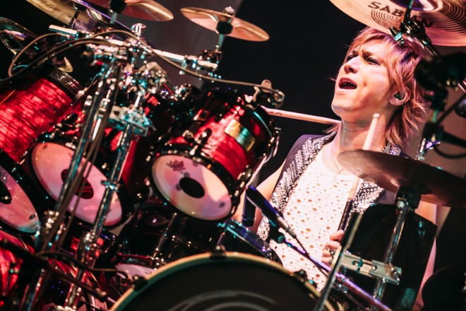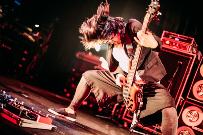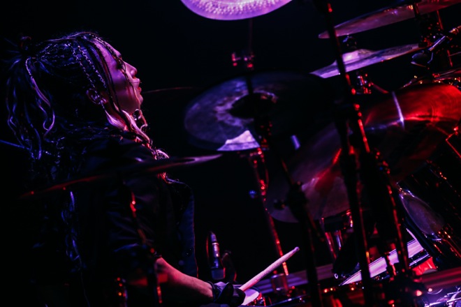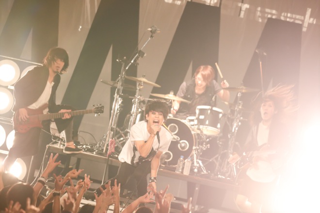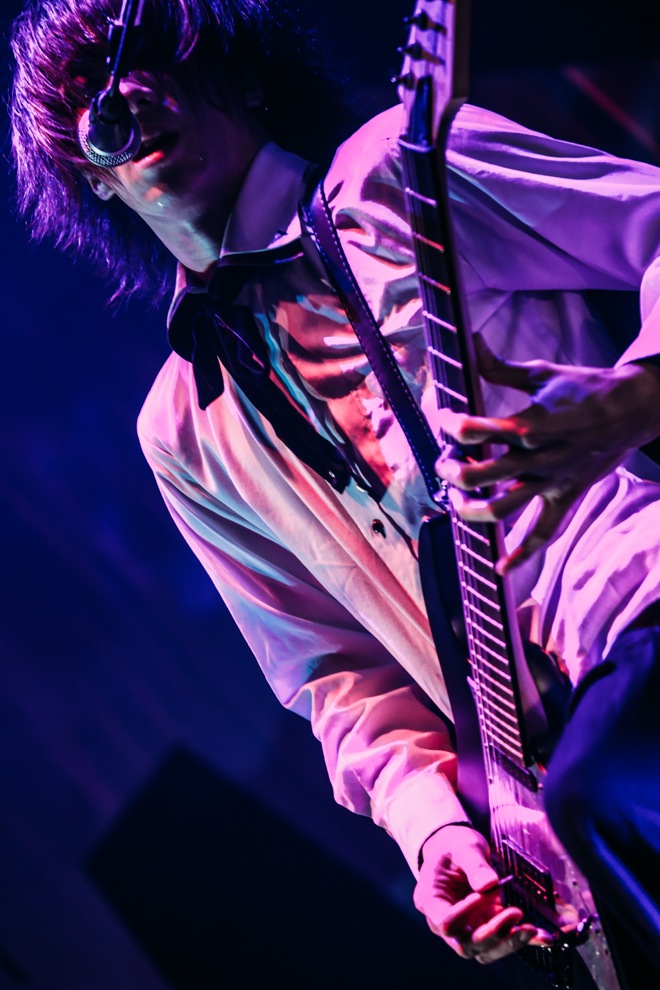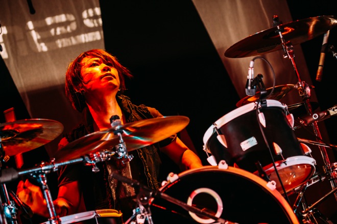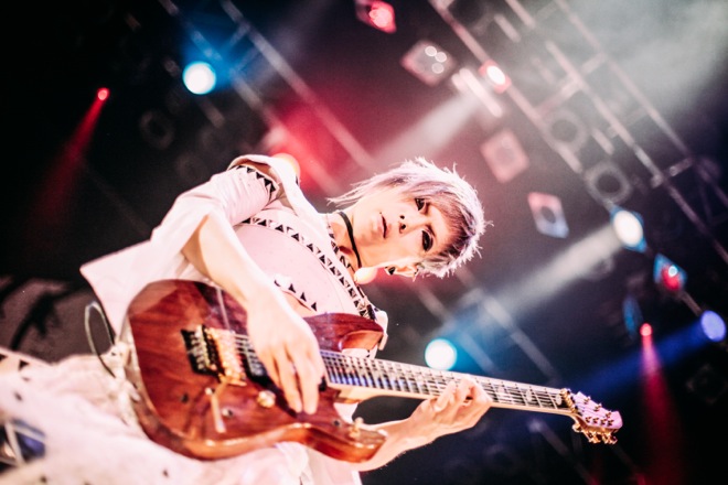 トップバッターを務めたギルガメッシュは、安定度の高い爆発力、とでもいうべきものを味わわせてくれた。さまざまな対バン形式のライヴやフェス出演なども経てきた彼らについては、もう百戦錬磨のライヴ・バンドと呼んでも大袈裟ではないはずだ。実際、限られたコンパクトな時間枠のなかで、オーディエンスが確実に喜ぶ“飴”を充分に撒きながら、“鞭”のようにしなやかで鋭利なサウンドで打ちつけてくる。そうした意味において、早い段階から場内に一体感をもたらした彼らは、100%以上の達成率で一番手としての役割を果たしていたといえる。が、そろそろこのポジションから脱却すべきではないか、という気もする。たとえば彼らがこうしたイベントでヘッドライナーを務めるためには、何が足りないのか? 僕にはその明確な答えが見つからなかったが、彼らがここから先に進むためには、まだ彼らが持ち合わせていない何かが必要なのではないかと感じさせられた。
