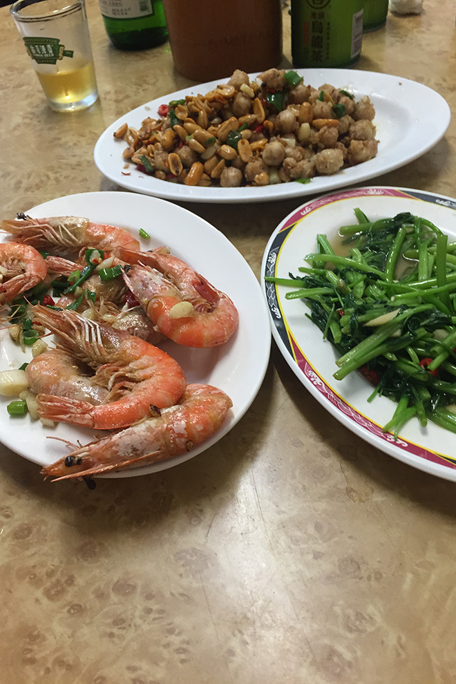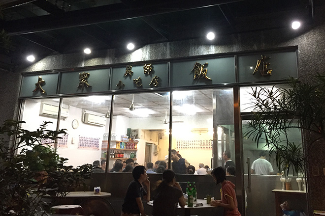 いかにも台湾っぽいお店の前でも撮影。この周辺には現地の人たちが使っているような食堂がたくさんあり、今夜の夕食もこのあたりで食べようという話になる。なお、ここでマネージャー氏とユニバーサルM氏が「下水湯」なる、なんとも興味深い文字列のメニューを発見。どうしても「下水湯」が気になってしまった一行は、撮影後、一旦ホテルに戻り、夕飯を食べた後、再びこの店まで足を運んで、実際にM氏が「下水湯」をテイクアウトすることになる(中身が気になる方は、実際に現地に行って食べてみてください)。