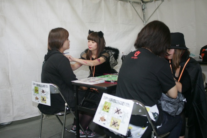 午前10時よりスタートした休憩エリア(神戸国際展示場3号館)は、午前中からゾンビや海賊に扮したオーディエンスたちによる賑わい。飲食ブースやフォトスタジオコーナーの長蛇の列が、一層ハロウィン気分を盛り上げてくれる。