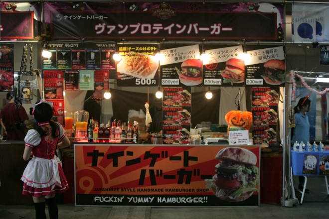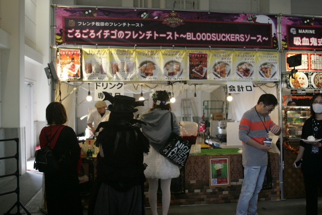 休憩エリアには飲食ブースが充実。「MARINE」の“吸血鬼式ガイコツプレート”はいまや定番メニューであり、「ナインゲートバーガー」の“ヴァンプロテインバーガー”も安定のクオリティだ。まろやかなスイーツを楽しみたいなら「フレンチ松田」の“ごろごろイチゴのフレンチトースト ~BLOODSUCKERSソース~”がおすすめ。コウモリ型のパイナップルがカワイイ「麦とろ人」の“ハロウィンゴールデンステーキ”はハロウィンパーティー限定のアンガス牛を使った逸品となる。