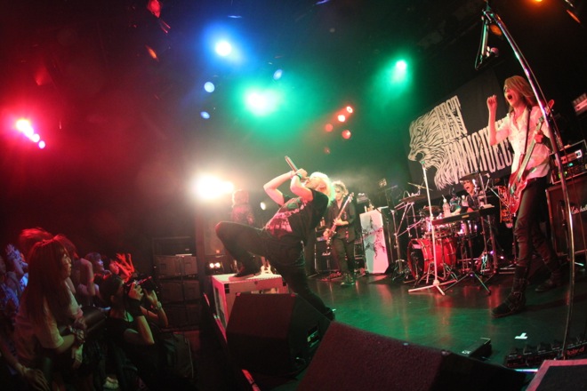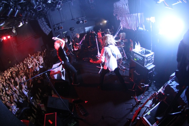 ライブは荘厳なSEに合わせてメンバーが登場。オープニングを飾る「God Knows」から激烈なブラストビートと超高速ツインリードが炸裂させた。続く「Addiction-中毒性愛依存症-」ではI’LL(G)とGAKU(G)の高速ツインリードギターソロが披露されたほか、HIRO(B)とKAZI(Dr)の安定したリズムセクション上をすべり出るようにはじき出されるギターソロが殺傷力満点。オーディエンスの目を一気にステージに引き付けていく。