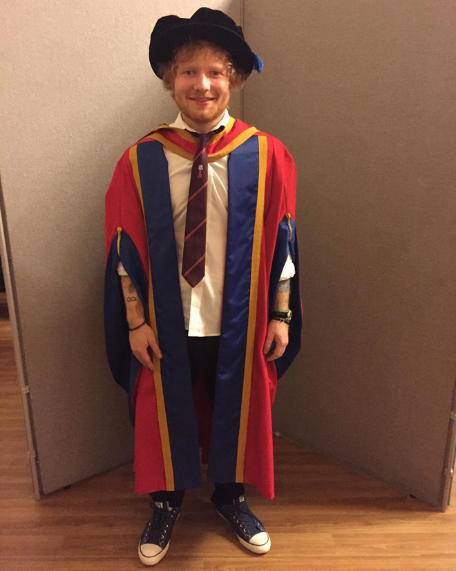 シーランはインスタグラムでアカデミック・ガウンを着た写真を公開。「今日、卒業した。僕はいま正式にシーラン博士だよ」とコメントした。