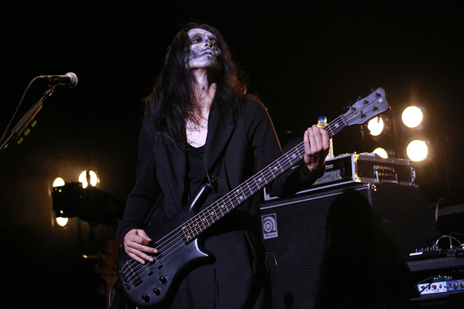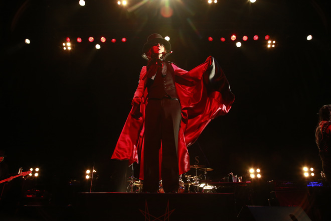 たとえメンバー全員が仮装していても、sadsの本質は揺るがない。時折観客をリラックスさせるようなMCを挟みながらも、圧倒的な音の塊で畳み掛けるさまは痛快だ。本編中盤のGOとK-A-Zの超絶にしてエモーショナルなソロコーナーも、非常に見応えがある。彼らの演奏に続いてクボタがダークなイントロを響かせると、妖しい吸血鬼に“お色直し”した清春がマントをなびかせて再登場。この「Darkness Is My Spiral Mind」が生み出した闇の空間は、今回のハイライトのひとつだろう。また、今夏のツアー中に会場限定販売されていたシングルDVDに収録の「May I Stay」も新たなアンセムとでも呼ぶべき輝きを放っていた。