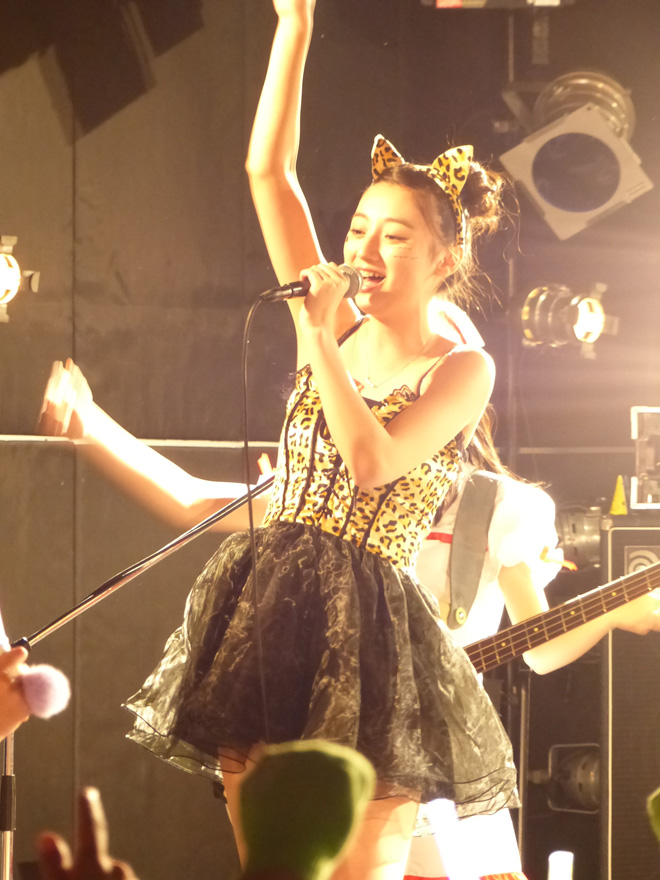 ハロウィン前日となったこの日は、メンバーそれぞれがハロウィンコスチュームで登場、Minamiが「男子盛り上がってるかー?女子盛り上がってるかー?原宿アストロホール盛り上がってるかー?」と煽り、「Don’t say “lazy”」からライブはスタートした。恒例の自己紹介をそれぞれ行なった後、「Every time~きらいのはんたい。~」、先輩ユニット・チームしゃちほこのカバー「抱きしめてアンセム」を続けて披露、2曲続けてのパフォーマンスで会場が温まったところで、Minamiの誕生日を祝うコーナーに突入だ。