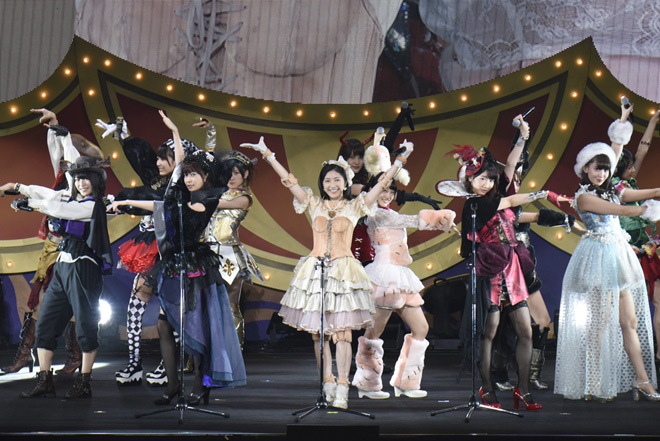 高橋みなみはブリキの猫、渡辺麻友はあやつり人形、柏木由紀は猛獣使い、峯岸みなみはカボチャ、武藤十夢はオオカミ男と、同曲のMVでお馴染みの仮装で参加。指原は「正直、もっと盛り上がってないのかなと思ってた!」と、2階席最上段まで1万人の仮装客でギッシリと埋まった客席を見回して驚きを隠せない。