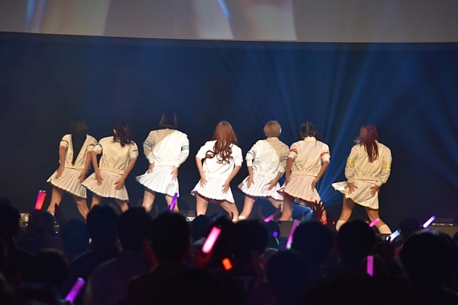 そして大トリを飾ったのは、これが本当に最後のコラボ共演となるしょこたん♥でんぱ組。「パ・パンチライン パ・パンチライン」の歌い出しでスポットライトを浴びると、登場を待ち望んだファンから歓声があがった。間奏部分ではメンバーそれぞれが自由にパンチラしたり、全員並んでお尻を左右に振るなど、数々のパンチラでファンを釘付けにする。