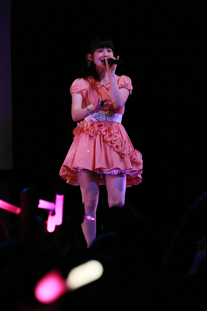 「皆さま今日の1周年、そして私の快気祝いに集まってくださってありがとうございます。ステージで改めてこうやって歌えて、“ああ歌えるって幸せなんだな”と実感しています」とファンへの感謝を伝えるももち。また、この日は1周年を祝ってスタッフからのケーキの差し入れも。観客が歌うバースデーソングに祝福され、メンバーカラーのクリームでデコレーションされたケーキにメンバーも驚きの声を上げながら嬉しそうな様子を見せる。MC明けには会場の電光板に「HAPPY BIRTHDAY」の文字が流れる中で「初めてのハッピーバースディ!」を披露。ファンの歓声が沸き起こる中、さらに3曲を披露した。