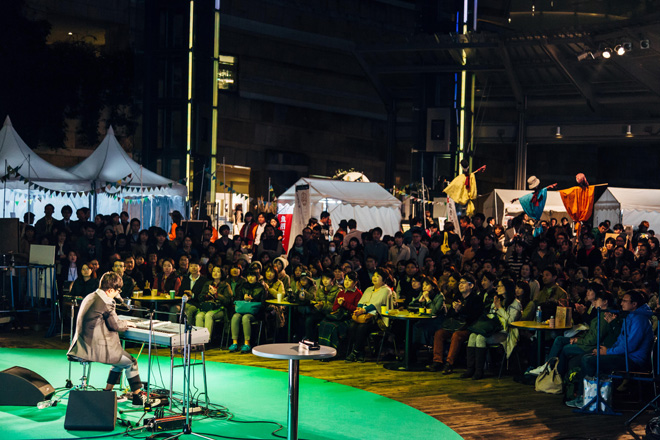 11月7日、六本木ヒルズアリーナで行われた生産者へ感謝を伝える収穫祭イベント<TOKYO HARVEST 2015>の初日ステージのトリとして、さかいゆうが登場、フリーライブを披露した。