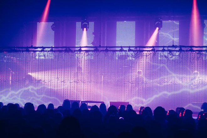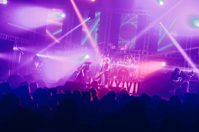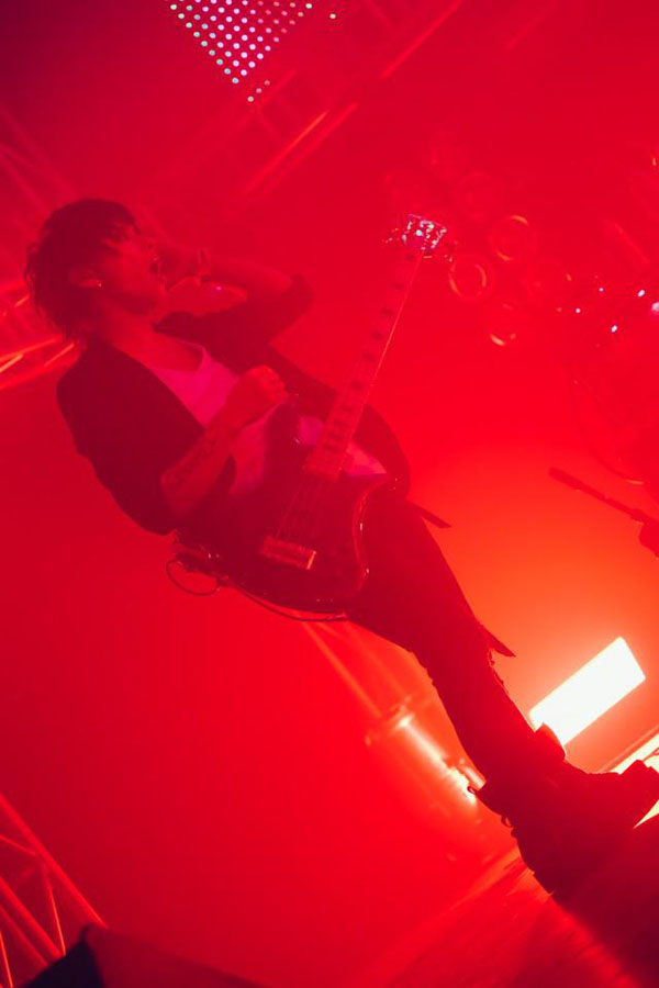 「ASTERIOS」のイントロが鳴り始めると、LEDスクリーンがまたステージ上に降りてくる。イルミネーションが輝く中で、その後ろでは何とメンバー全員がギターを持ってプレイ!これもまた「いつもと違うライヴ」の特別感を増しつつ、同期と生音を融合した独自の“規格外”サウンドを聴かせるDIVならではのパフォーマンスとも言えるだろう。