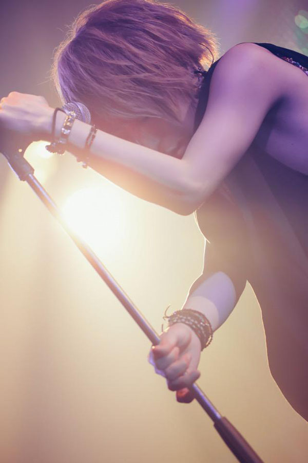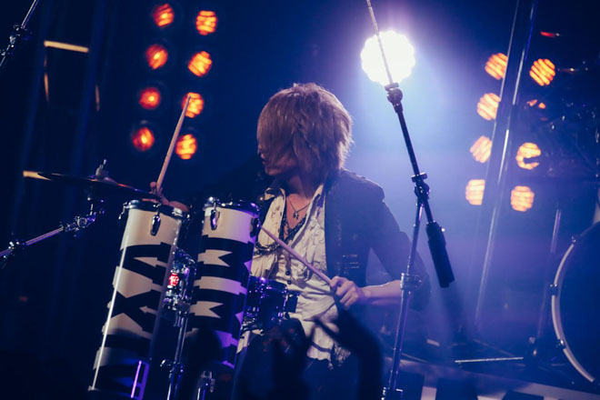 ちょび(B)、satoshi(Dr)、CHISA(Vo)、将吾(G)の並びで4人がステージ前面に並び立つという珍しい状態で、「イケナイKISS」を演奏。立ちドラムで演奏してMVをライヴで再現するというユニークなオープニングを終えるとsatoshiが後方に下がり、2曲目の「LOVE IS DEAD」から通常のバンドスタイルとなる。