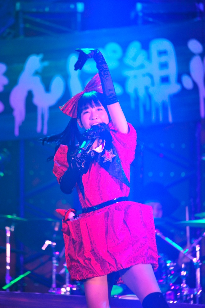 後半では「ゾンビしかメンバーにいないけど、私たち、この先、だいじょうぶかな」、「だいじょうぶ。こんなにやさしいモンスターたちが会場にいるし」「あ! 最後の曲が始まる!」というメンバーたちの小芝居をはさんで、全員がカラフルなリボンを振り回し、キレッキレのダンスを披露する「でんでんぱっしょん」で視覚的にも楽しませたライヴを締めくくった。