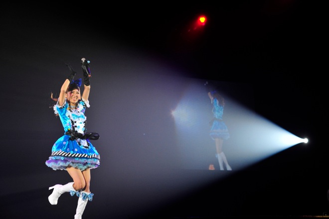 続いて再び、やまだひさしの司会でステージに登場したのは『不思議の国のアリス』の仮装がスイートなBooing!!!のYURICAだ。普段は2人で活動しているBooing!!!だが、もう一人のメンバーであるLUKAが舞台本番日だったとのこと。しかし、どうしても<HALLOWEEN PARTY>に出演したかったため、ひとりでエントリーしたという。『THE ROAD TO HALLOWEEN PARTY 2015』を勝ち抜き、SHOWROOMの2位になったこと、そしてアイドリング!!!のメンバーでもあることが明かされ、フェミニンでパワフルなヴォーカルを披露、ステージに華を添えた。