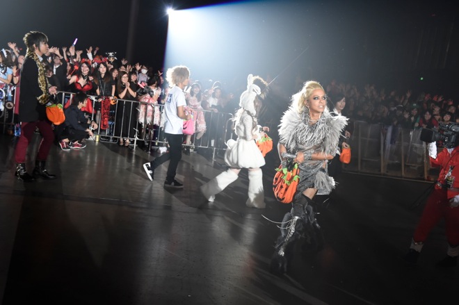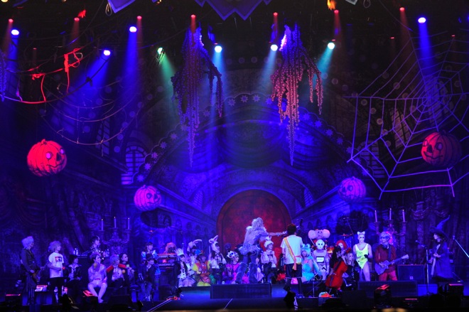 「ハロウィンはHSですね! ハロウィン、最高!」とHYDEが叫び、最後は出演者たちがステージから降りて客席を練り歩き、お菓子を配る楽しくて、ちょっと切ないラストパレードナンバー「HALLOWEENPARTY」の始まり、始まり。