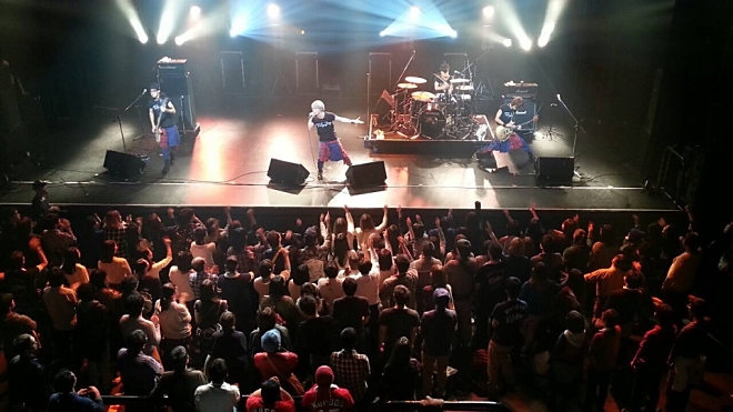演奏終了後、MCであるWエンジンと今後の活動についてトークを繰り広げたメンバー。新曲「3 times」のリリースイベント情報を発表し終えるとメンバーから観客に向けて彼らのトレードポーズでもある「ガムロック」を伝授。最後は会場全員で「ガムロック」と叫び、本編を終えた。