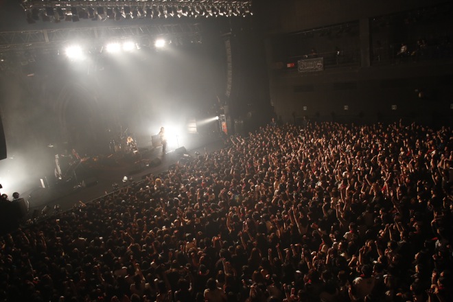 最後のMCで「絶対ここ(Zepp Tokyo)に自力で帰ってくるから!」と力強く宣言してから「からっぽの街」とラストナンバー「Prologue」で全9曲全45分間の“初Zeppライブ”を締めくくったASHだが、VAMPSのアンコール時にhydeの呼び込みで再びステージに登場。「Sex Blood Rock N’ Roll」を一緒に歌うという、ジョイント・ライブでしか見られない貴重なパフォーマンスも披露した。