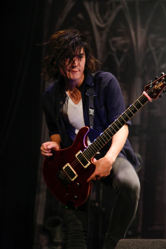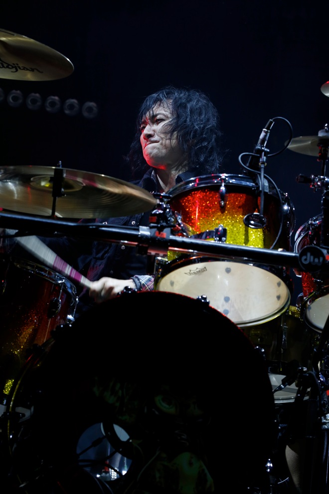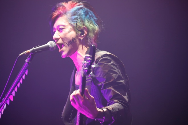 K.A.Zのギタープレイは初日から冴え渡っていた。16ビートのカッティングは楽曲に疾走感を与え、ロングトーンによるソロは楽曲を壮大に響かせる。本編エンディングでギターのヘッドを床に叩きつけてノイズを発生させたアグレッシヴなプレイも、華麗なギター回しも、そのすべてのサウンドに身を任せることで得られる享楽が心地よい。