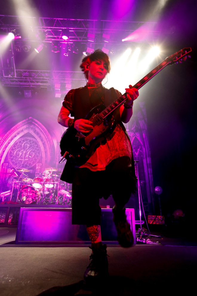 <JOINT 666>というタイトルは文字通り、東名阪3ヵ所6公演の対バンを意味するものだが、それだけではない。そう感じさせる不穏で邪悪なエナジーが息づく会場には、初日から超満員のオーディエンスが場内の熱気をより高めていた。ツアーの口火を切ったのは、この日の対バン相手となるMY FIRST STORYだ。
