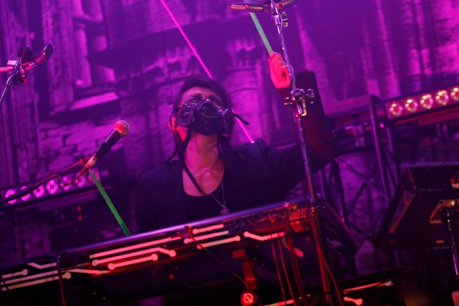 「しばらくここにいるから、一緒に楽しもうぜ! 明日も、首洗って待ってろよ!」というHYDEの言葉で<JOINT 666>第一夜が華々しく終了。初日ならではの荒々しさをともなったステージはVAMPSが持つ狂暴性に拍車をかけて、<JOINT 666>2日目に繋げることとなった。