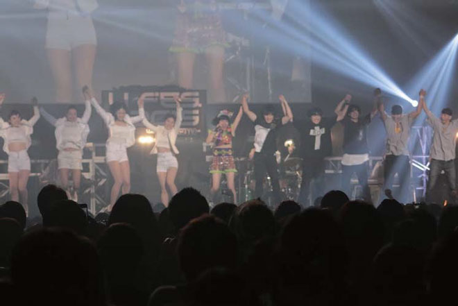 HIKAKINのビートボックスで始まった「UUUM SUPER LIVE」の最初を飾ったのは、UUUMのネットワークから音楽を得意とするYouTuberが集まって結成されたバンド「NET WORK BAND」。supercell の「君の知らない物語」のカバーを熱唱し、バックではセクシーダンスや、ヲタ芸と呼ばれるダンスで会場を沸かせた。
